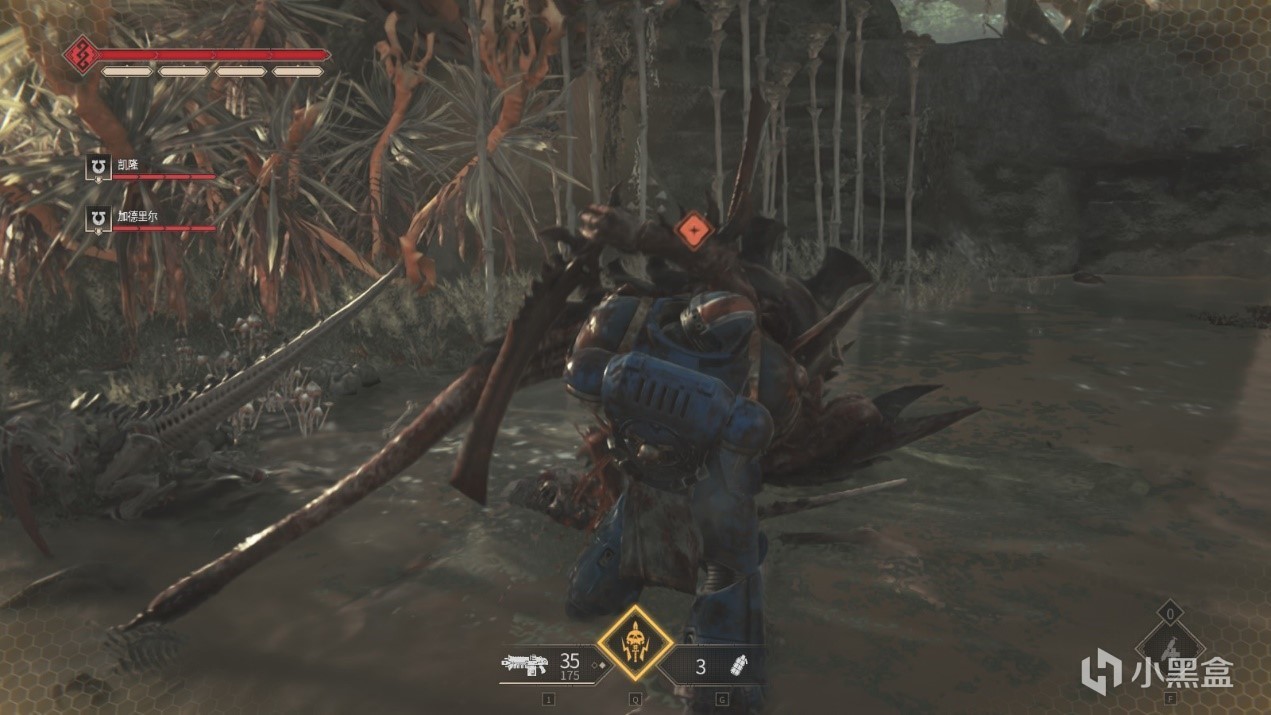 顺便一提,在“星际战士”这两部作品中,玩家所面对的敌人都是外来种族。前作是兽人战士,本作则是泰伦虫群。反正无论哪种,都不会让人类好过就是了。因此,玩家作为极限战士,信念只有一个,那就是为帝皇效忠!