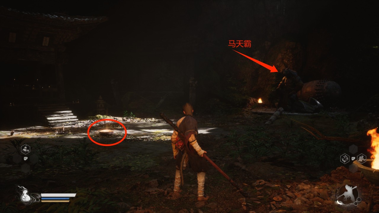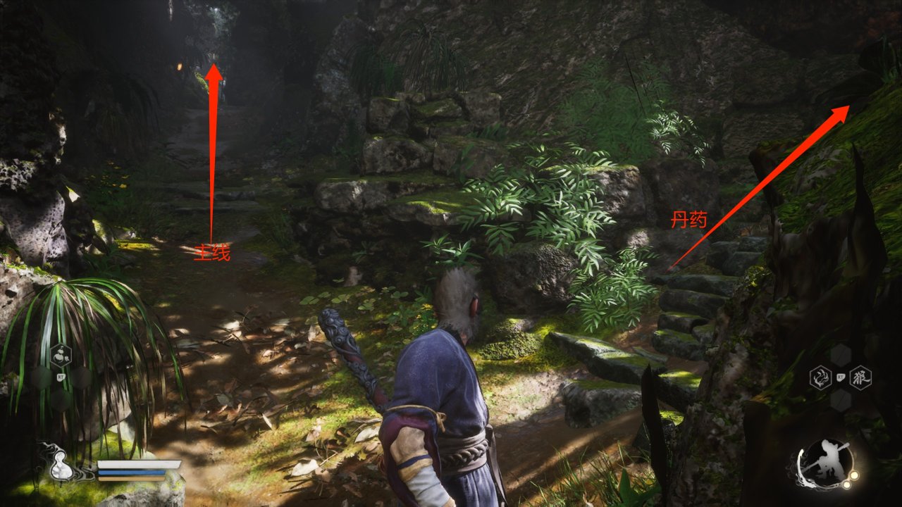 回到打敗白衣秀士的場地,往前走進入黑風洞。一路走可以看到左邊有光,先去左邊找到一個【打坐蒲團】(3/3)和旁邊的【太乙紫金丹】。