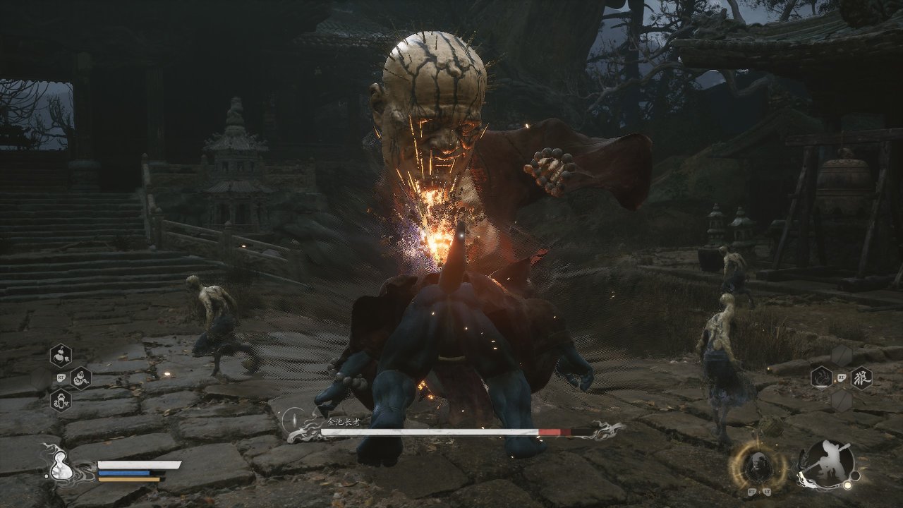打黑熊精到半血他會轉階段,攻勢更強一點,注意別在一階段用廣智,點燃黑熊精它會提前進入二階段。