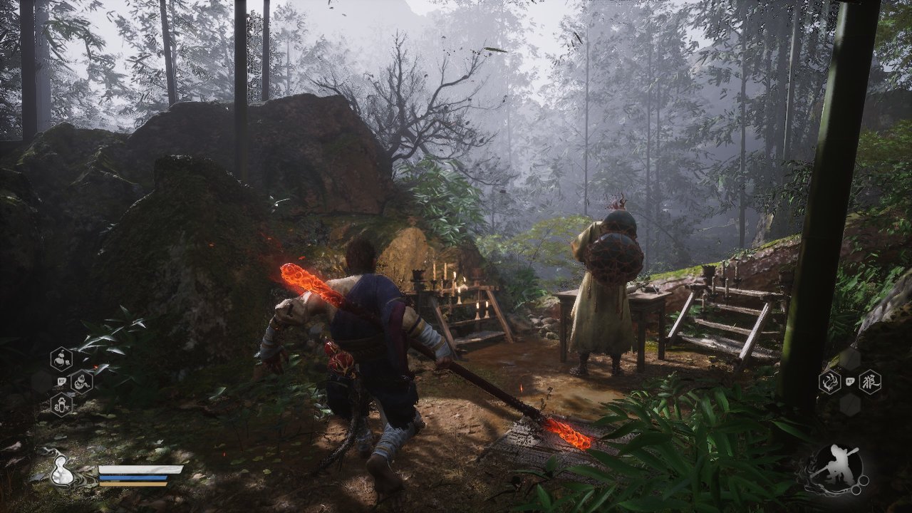 隨後右轉進入戰鬥,打敗頭目”牯護院“。戰鬥到一半會觸發劇情,土地出現教你定身法。
