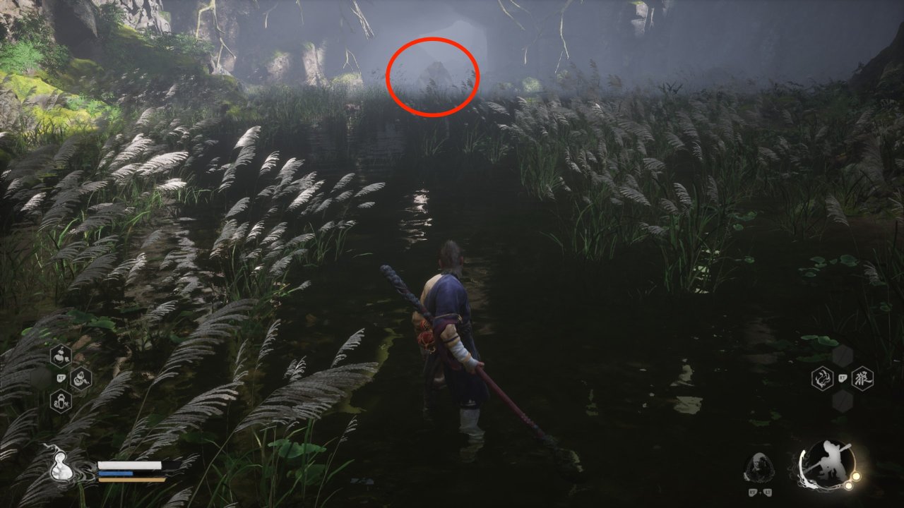 過門之後可以看到一個山坡和一個小水池,水池沒有重要道具可以去可以不去,直接上山坡也行。