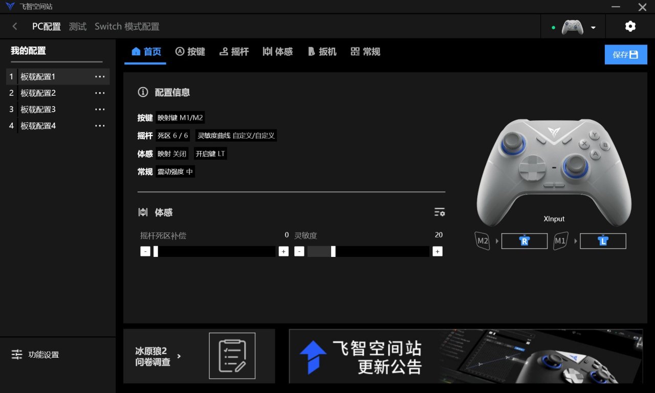 当然除了超大电池,冰原狼2还配有一款功能超级丰富的软件——飞智空间站(访问飞智官网即可下载)。这绝对是我目前见过功能最丰富的一块手柄配套软件。手柄上的各种信息都可以在软件的主页上看到。