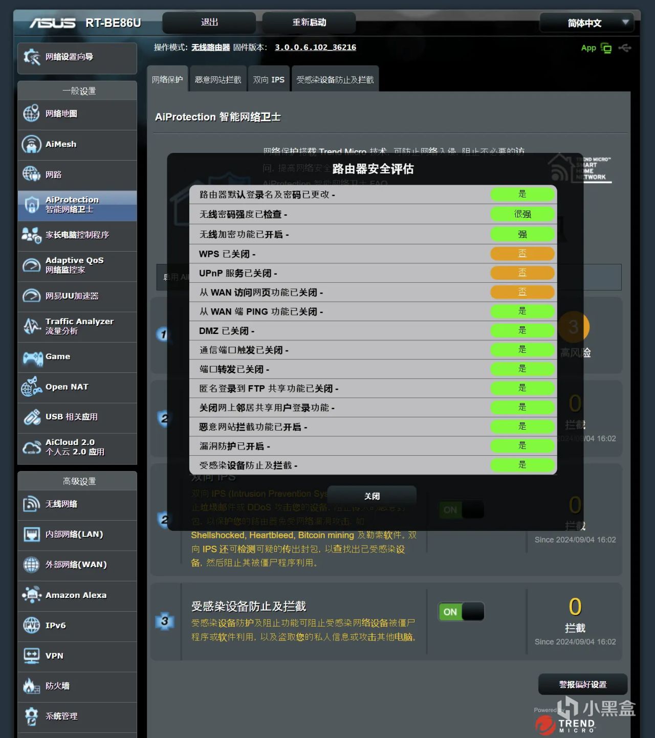 新版本的固件加入Ai算法,并与趋势科技的云数据库强强联手,会自动进行路由器安全评估,还可自动拦截数据库中的恶意网站、屏蔽垃圾邮件、阻止DDoS恶意攻击等,替我们把好家庭网络安全的第一道关。