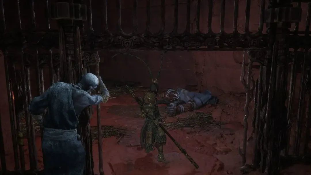 這裏向下看能看到紫光和很多人在那裏做,直接跳下去就能打這個監獄裏的boss了,打完之後之前牢門上的紫色結界就全部消失了。牢門都可以在外面打開。