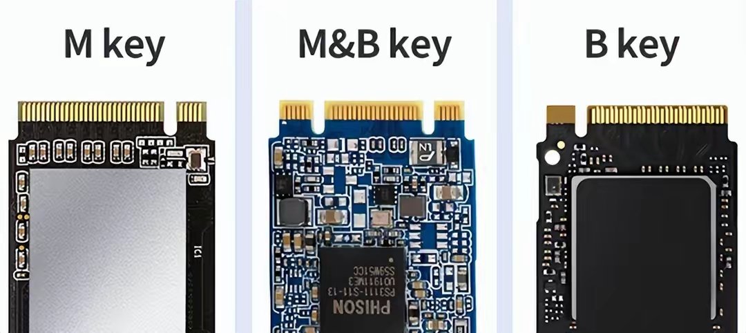 小知识:M-Key接口,也叫Socket 3,防呆口在右边,支持SATA,PCIe x4;B+M-Key接口,左右两边都有防呆口,可以走PCIex2和SATA总线;B-Key接口,也叫Socket 2,防呆口在左边,目前几乎被淘汰了;
