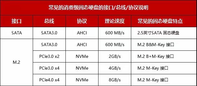 除了本身的设计与用料,固态硬盘的总线、协议、接口都会影响到性能的发挥,而且它们之间相辅相成。简单来说,就是一块协议强大的NVMe硬盘,需要与之匹配的总线和接口,否则无法承载高速的传输性能!