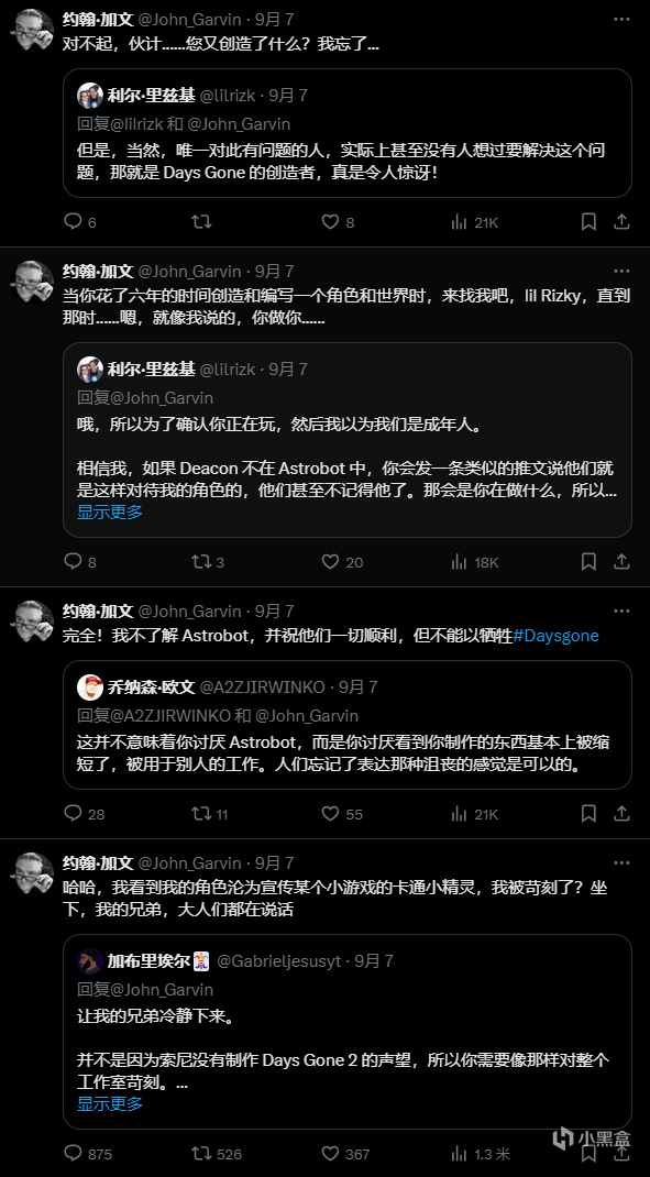 事情起因,johb Garvin轉發了一條Bend studio(往日不在的工作室)致敬《宇宙機器人》的推特,回覆道(截圖機翻)