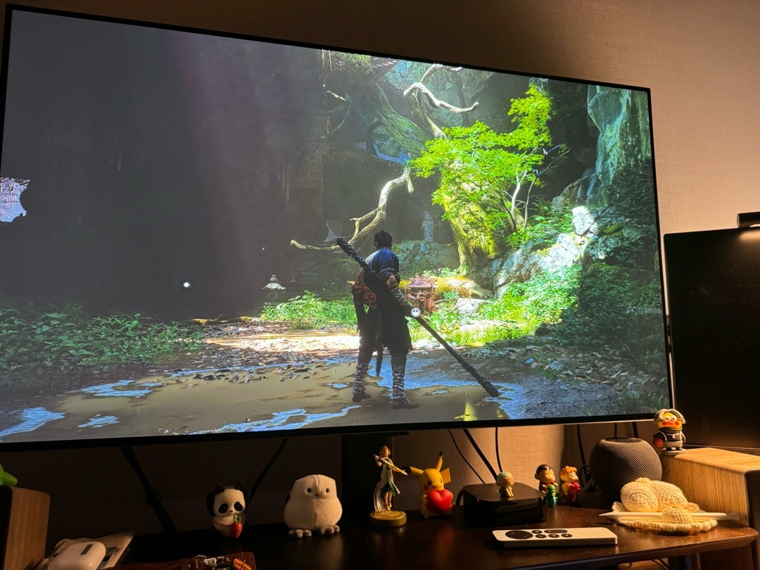 最后测试性能,4070性能我自己有数和自用3060ti差不多,但是省电且带dlss3.0效果还行,黑神话2k中地档光追无压力,算上dlss3.0可跑至60+fpa,而4k受到显存带宽等影响必需降低画质,关闭光追,降低画质,dlss平衡档勉勉强强到40-50fps,值得注意得是电脑噪音不大,即使拉满显卡温度也都低于80℃,极光X应该用的是新磨具,所以散热能力非常强。