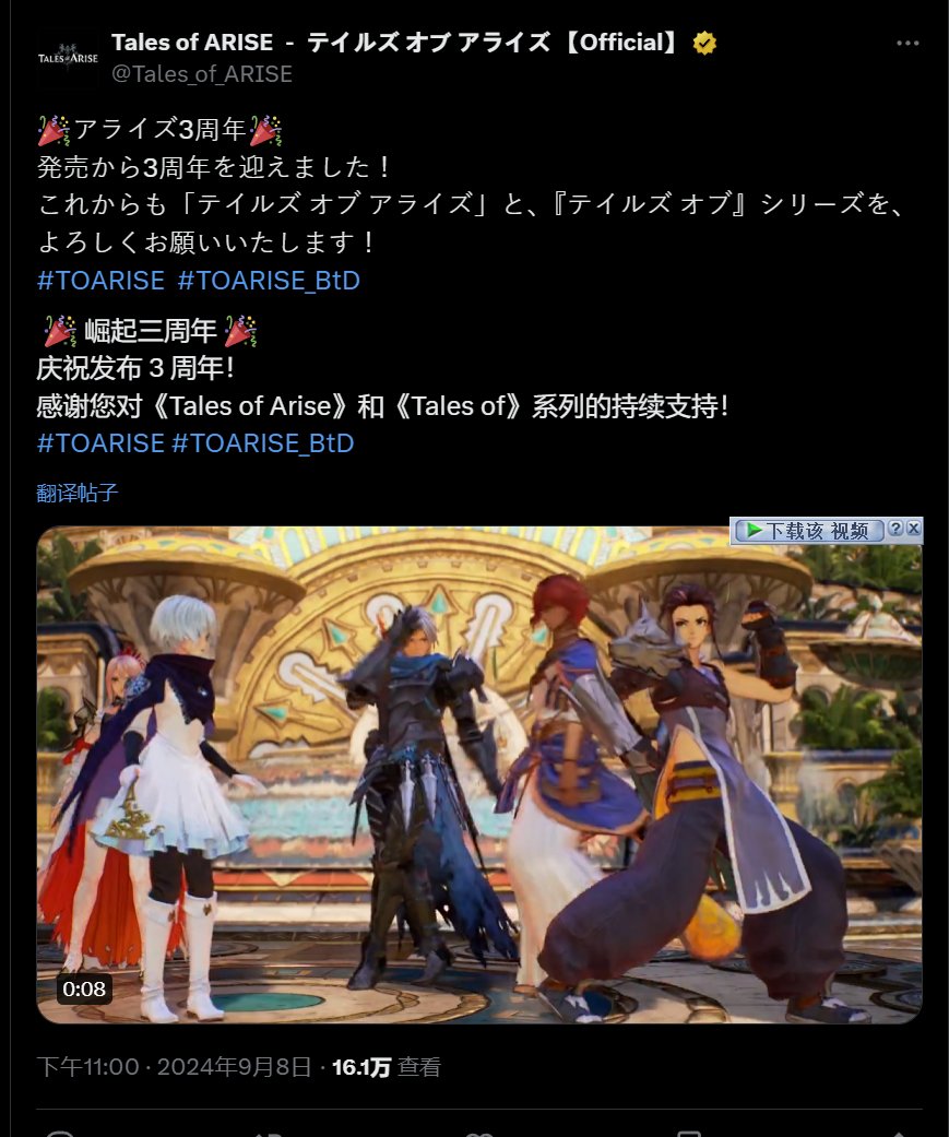 官方發推文慶祝《破曉傳說》發售三週年《破曉傳說》發售三週年。此前2月份官方宣佈《破曉傳說》銷量突破300萬!