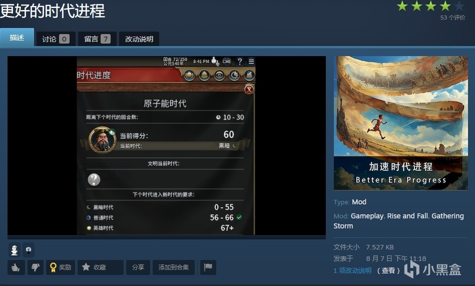 請注意,本mod刪除了最小時代間隔,因此時代可能比你想的要快得多。 黃金時代將變得更加具有挑戰性。