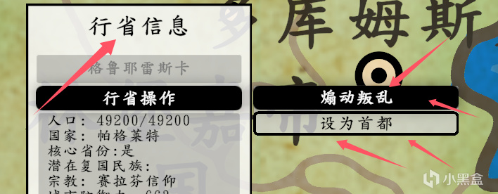 省份修改:放大地图看到省份之后,按住键盘左边shift键点击省份,就可以出来省份的信息面板,同样的修改即可!可以设为首图或者单独煽动起义!