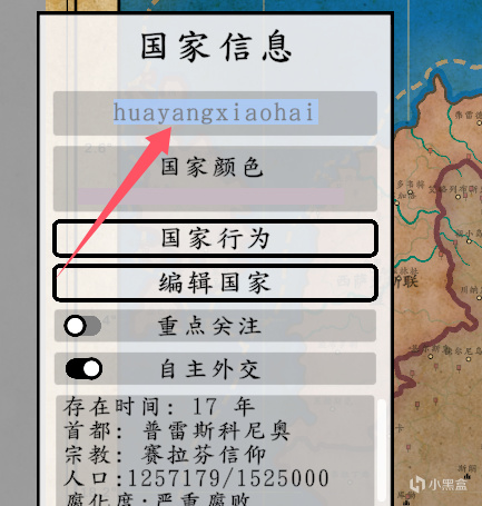 左键单机所选国家,看到国家信息下面的名字,点击之后就能够进行修改,支持中文输入!