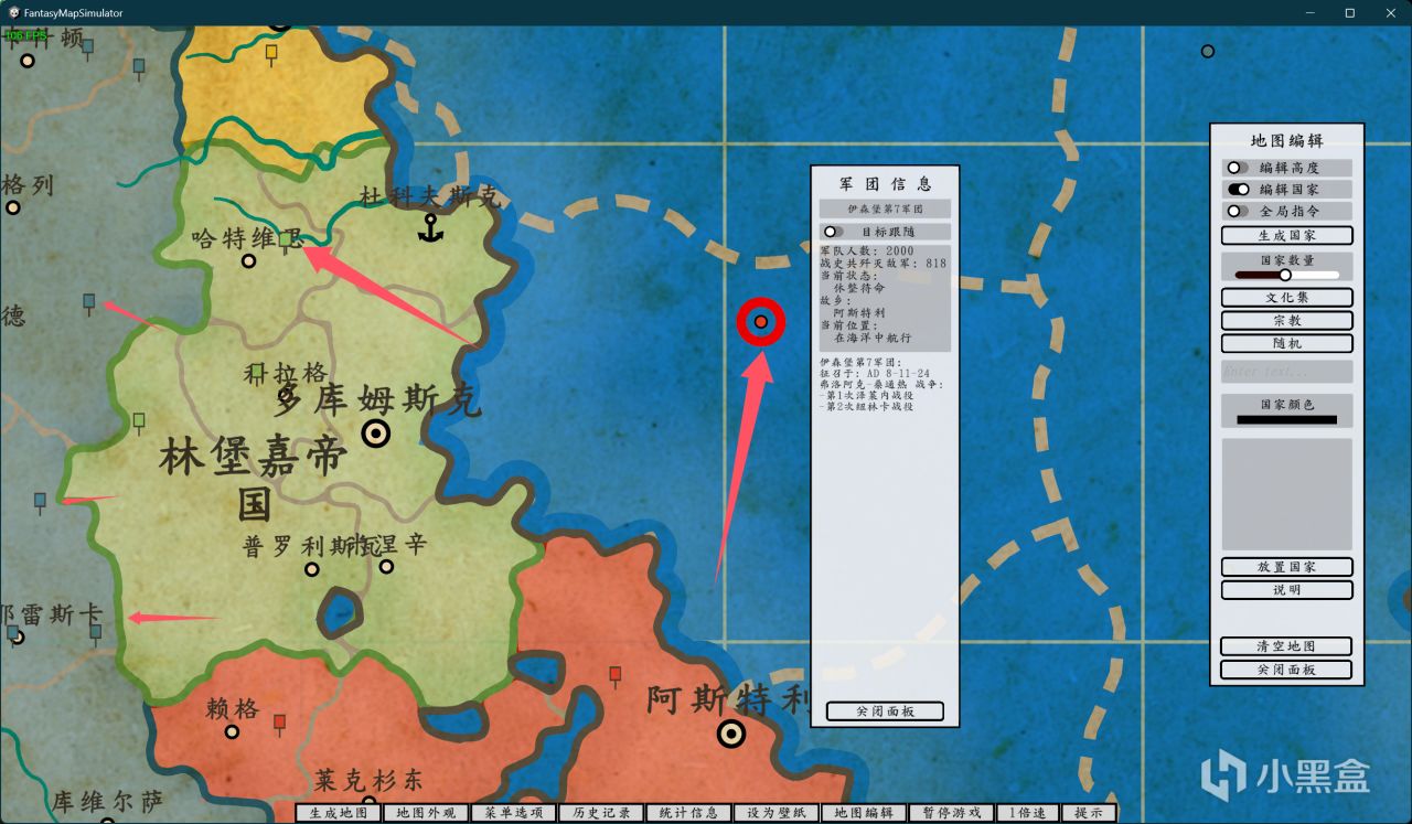 来自官方的小技巧:小技巧:绘制空白陆地之后,先放置一个大的国家,占据整块陆地,再暂停游戏,一个个摆放置新的国家.在自动占领和初始化空白陆地的功能开发完之前,建议使用此方法摆放多个国家