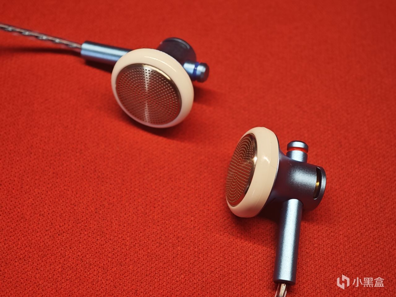 耳机头左、右侧分别设计了蓝、红识别环,还有耳机柄的“R”、“L”来区分左右,小小的细节,带来非常好的使用体验。耳机的腔体材质是铝合金材质,戴起来轻盈舒适、不压耳。