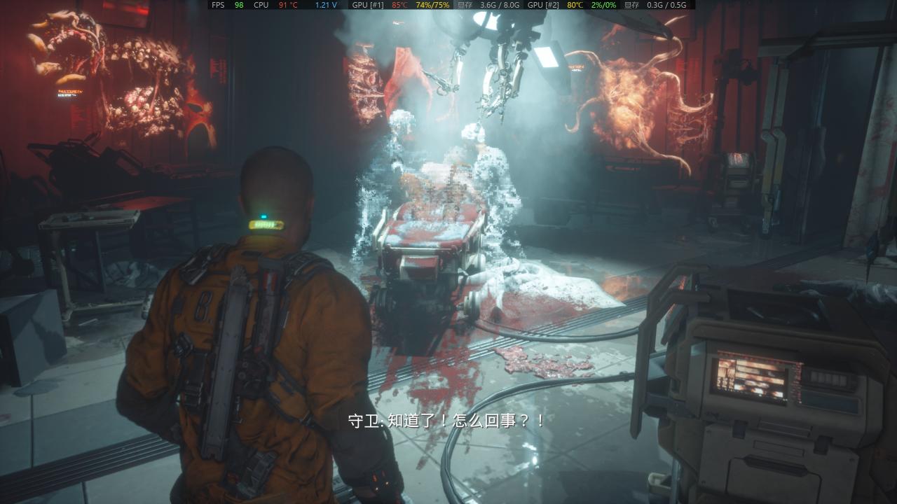 更別說時刻圍繞着的機器空轉的噪音,耳邊響起的急促報警聲和無時不刻都存在的怪物的那低沉而又急促的腳步聲。恐怖的氛圍一下就環繞在了玩家的耳旁。