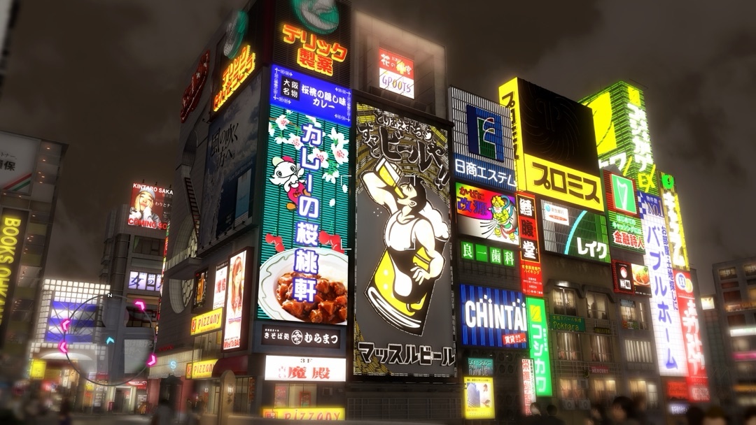 蒼天堀,這個在如龍系列出場多次的地方,在如龍0,如龍極2,如龍7都出現過,夜景非常漂亮,更是美食聖地,一條街全部都是餐飲(在最終章去神室町前,唯一沒有喫完當地所有餐品的地方),品類多,而且價格也是層次不齊!此次澤村遙和秋山駿的故事在這開始~