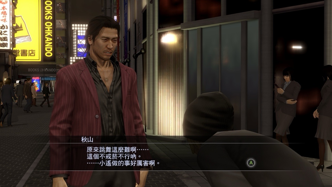 4代老朋友秋山駿在這作也體現了該有的智商和情商,準備在蒼天堀開分店的他來到了這座城市,因一次事件意外再次與澤村遙相逢!並且在主線中大放異彩,而且成爲了如龍5的戒菸大使(笑)原因如下!