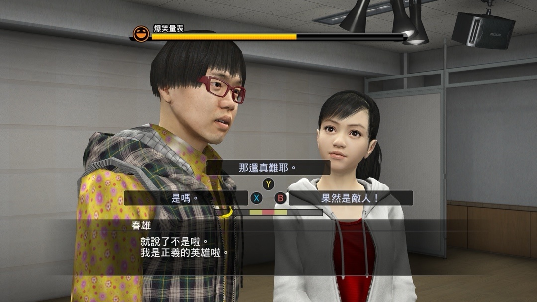 這個特別有意思,一共有三場,每場一個段子,確實挺搞笑的,根據回答的時機增加搞笑計量槽,最後到達一定程度觸發遙的關愛重擊(笑)