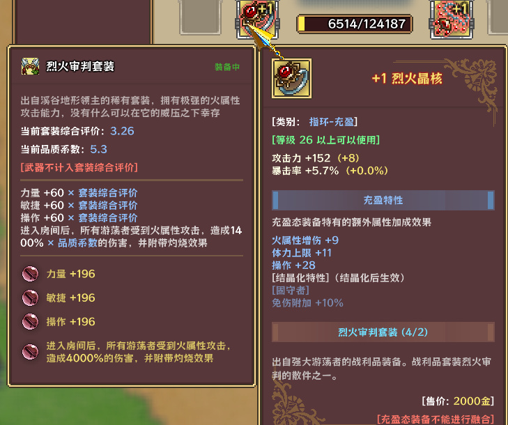 火屬性的武器,如果搭配火屬性增幅的史詩級的首飾、衣物,傷害又會得到質的飛躍。
