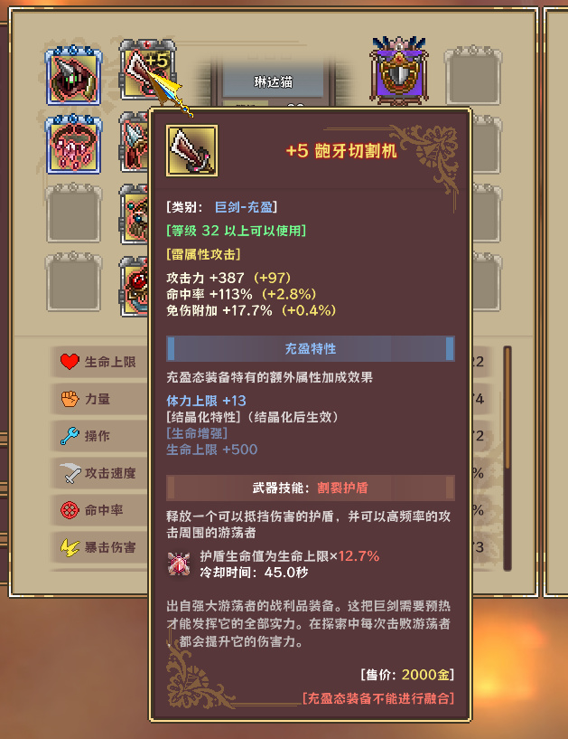 以跟隨筆者一路冒險的史詩級武器“屠戮喙刃”爲例,這把攻擊附帶火屬性的大刀就是典型的“跨界型選手”。