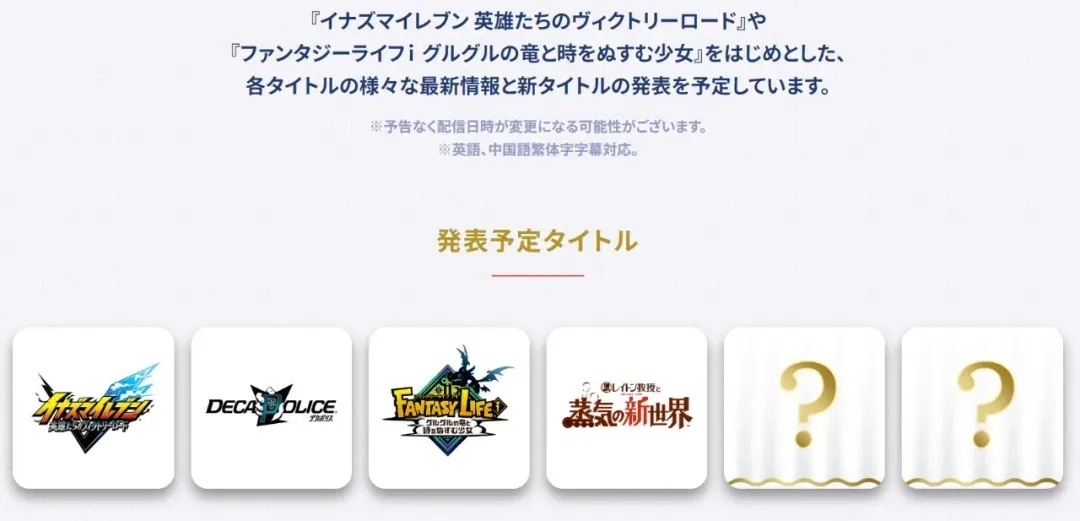 L5將於9月24日晚8點播出「LEVEL5 VISION 2024 TO THE WORLD’S CHILDREN」線上發佈會節目,今次將帶來4款已公佈遊戲的最新消息和兩款神祕新作,節目內容以閃電十一人和奇幻生活i爲主。