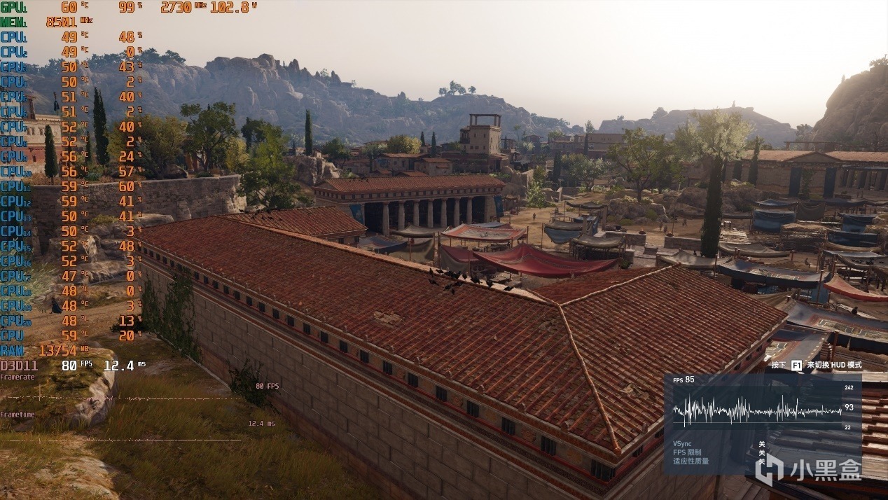 ▼最后整体的平均游戏帧数在85帧左右,表现不错。
