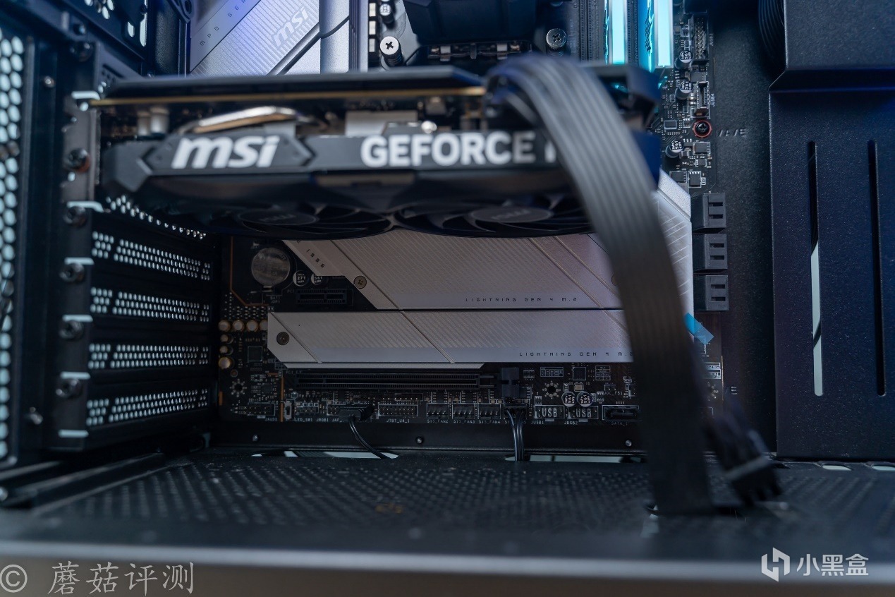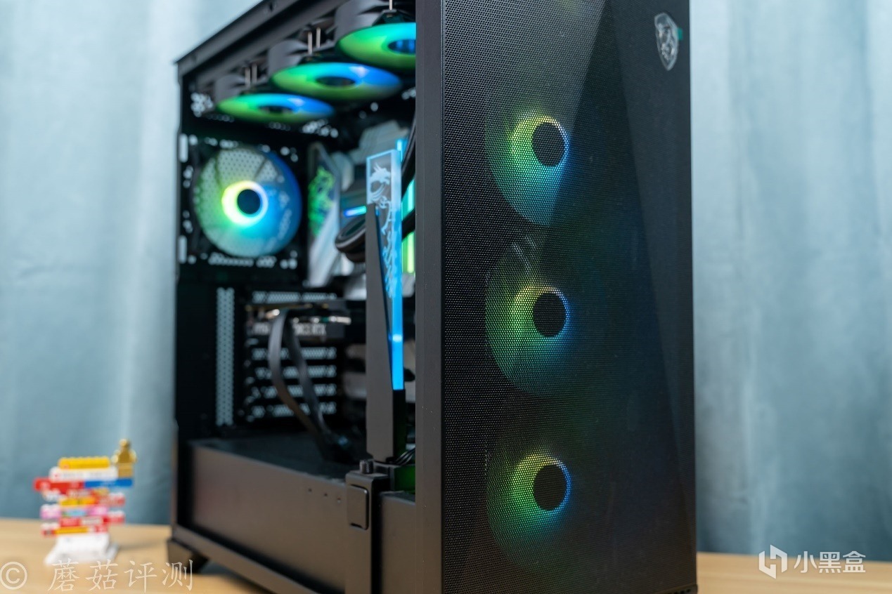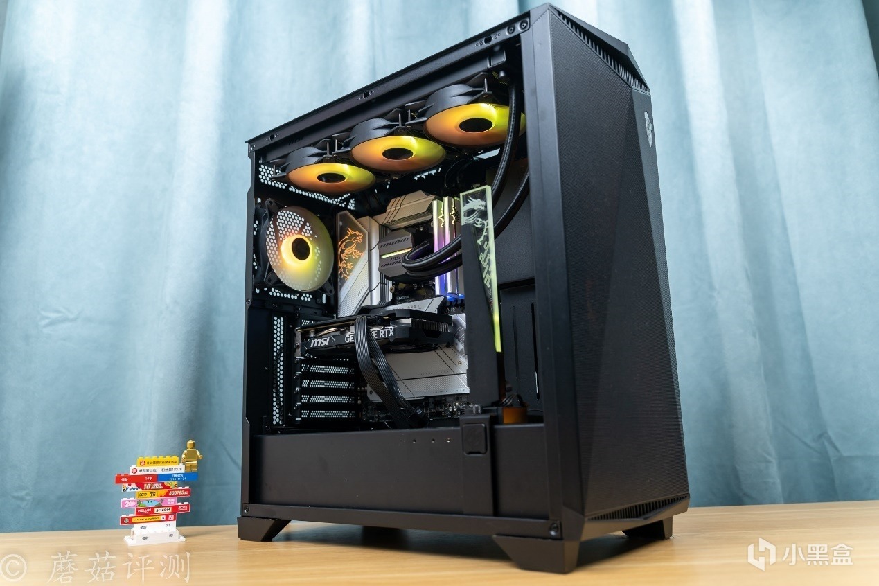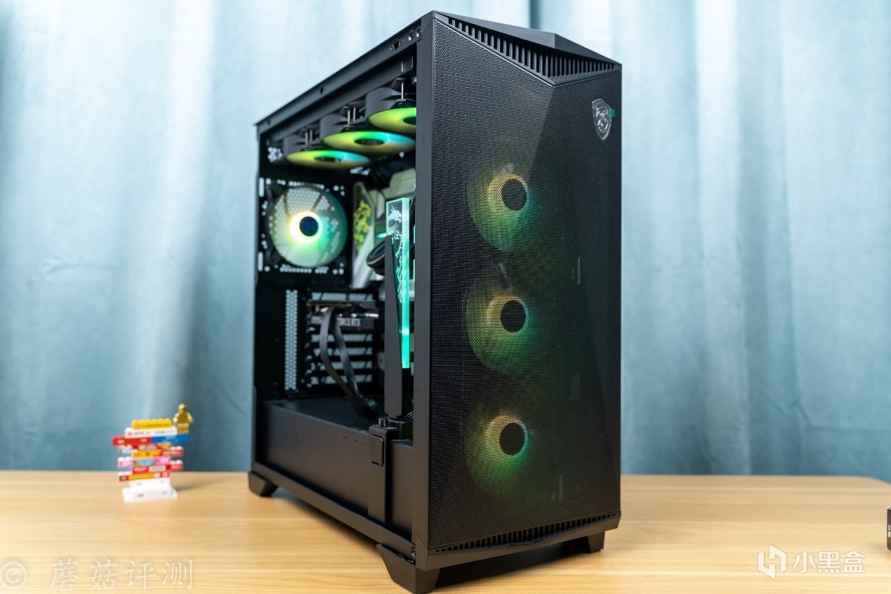 ▼机箱是微星的MPG GUNGNIR 300R AIRFLOW氪金枪3,这款机箱的颜值非常漂亮,机箱前部有大面积的金属冲孔网,其在机箱前部标配了3把支持ARGB灯效的机箱风扇,搭配金属冲孔网的颜值效果非常不错,还能在机箱前部提供充足的进风。