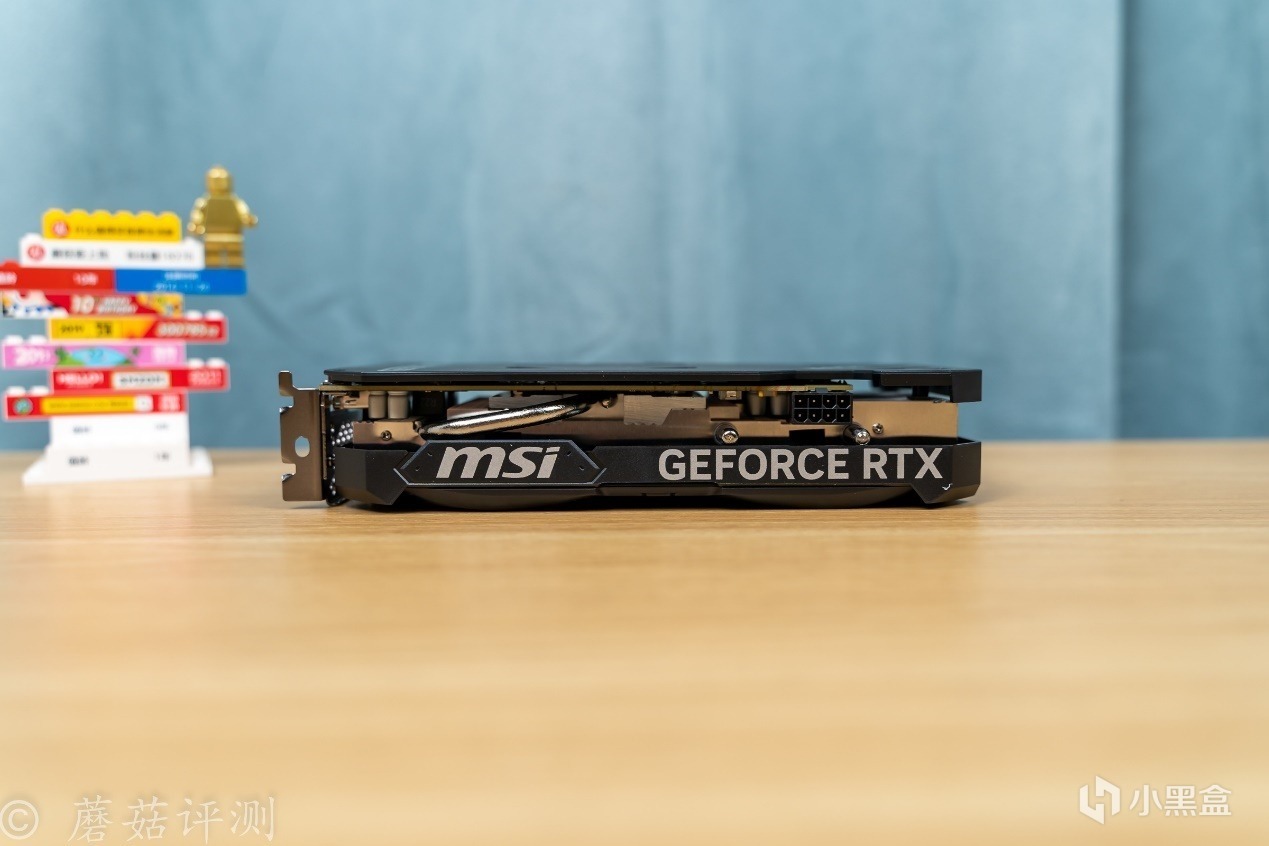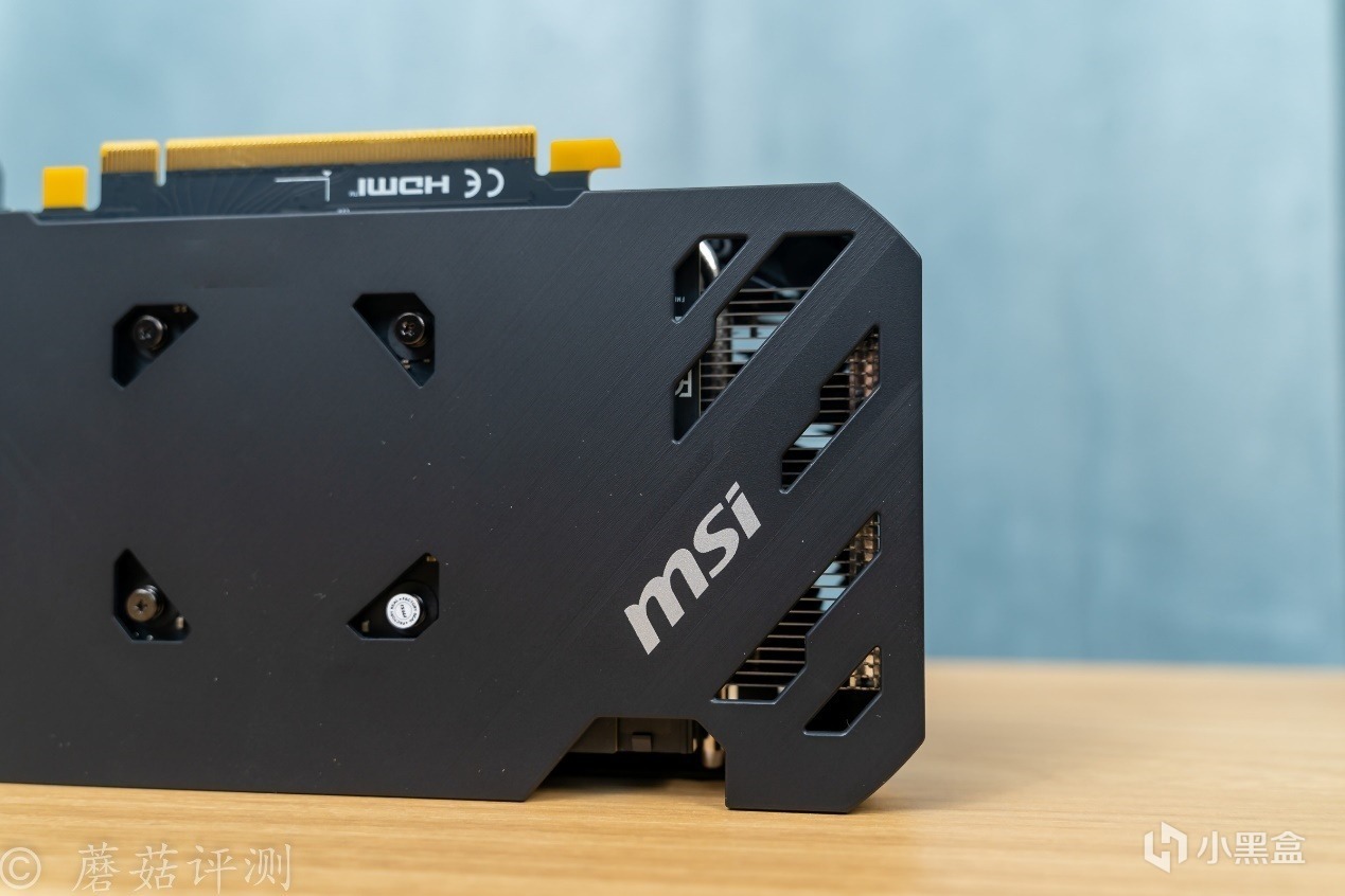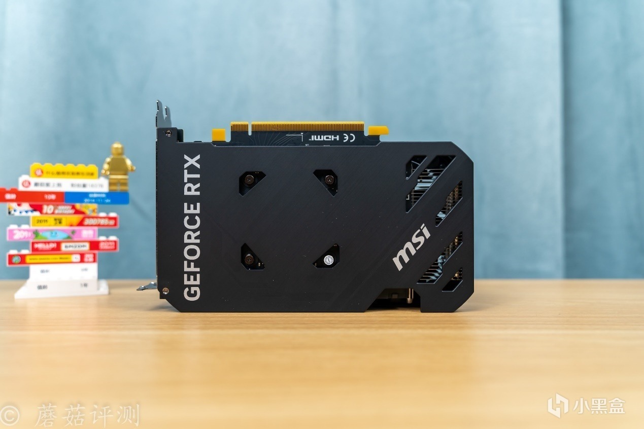 ▼显卡背面有背板,右侧是RTX的字样,左侧有微星的MSI的LOGO。
