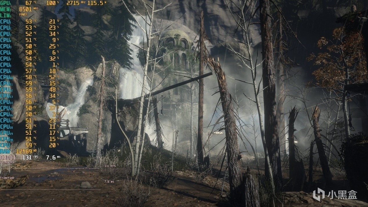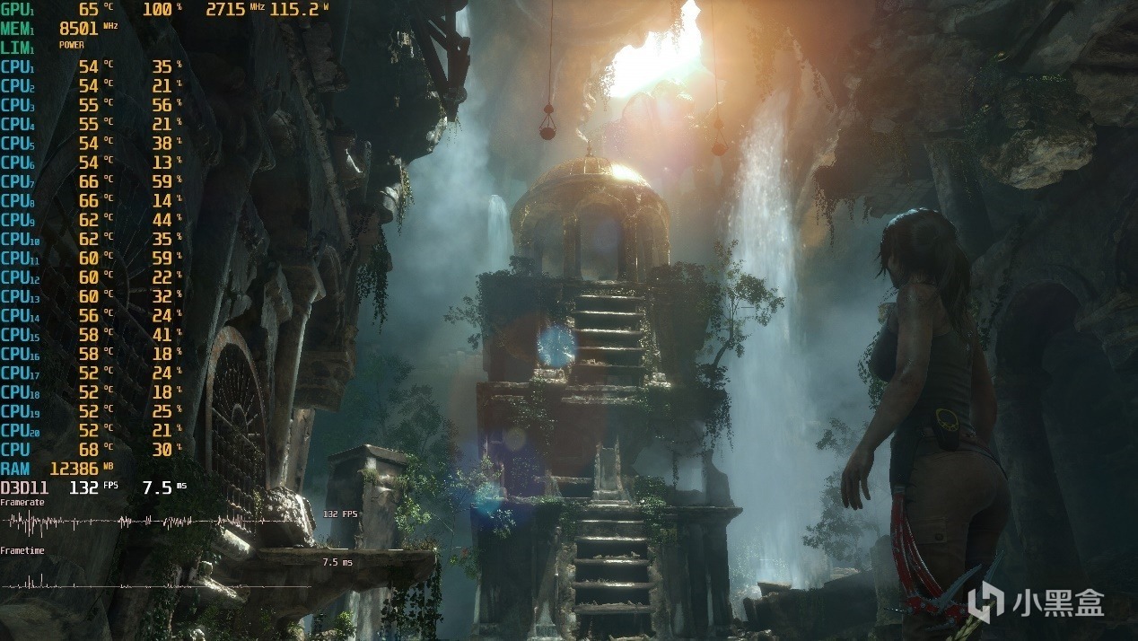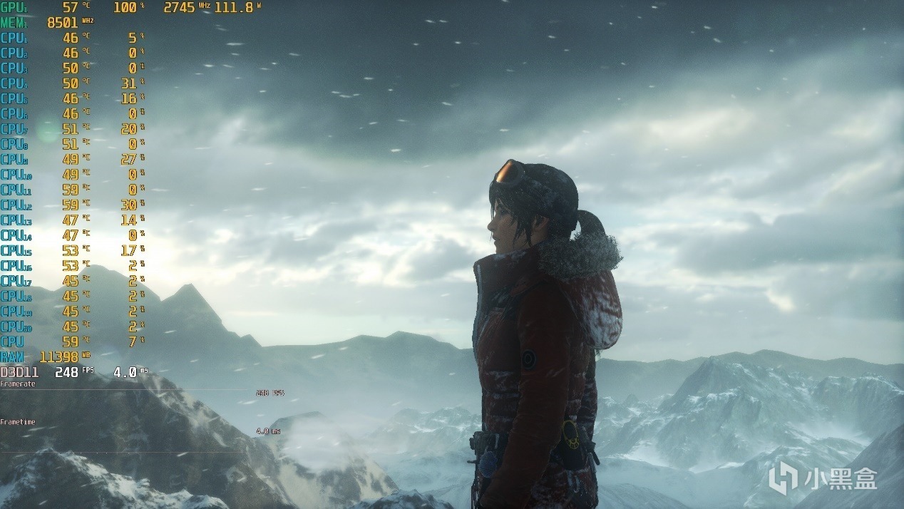 ▼古墓丽影,2K分辨率,全高特效,第一个测试场景,游戏帧数在248帧左右,挺流畅的。