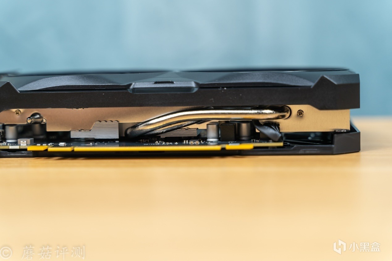 ▼显卡顶部,清晰的可以看到一根热管,且热管有镀镍处理。