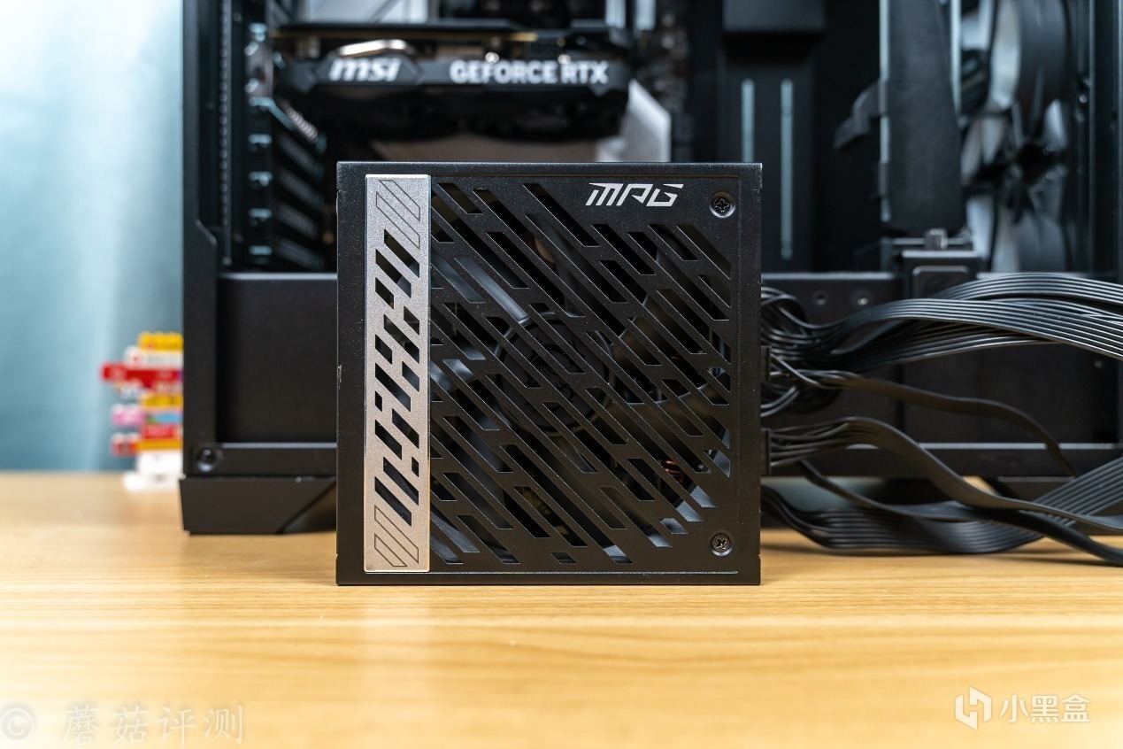 ▼电源用的是微星的MPG A850G PCIE5金牌全模组电源,这款电源的额定功率850W,其中+12V单路输出849.6W,另外还支持宽幅输入,非常不错。电源的外观非常漂亮,侧面有铝合金装饰件,表面处理的非常精致,很有质感。