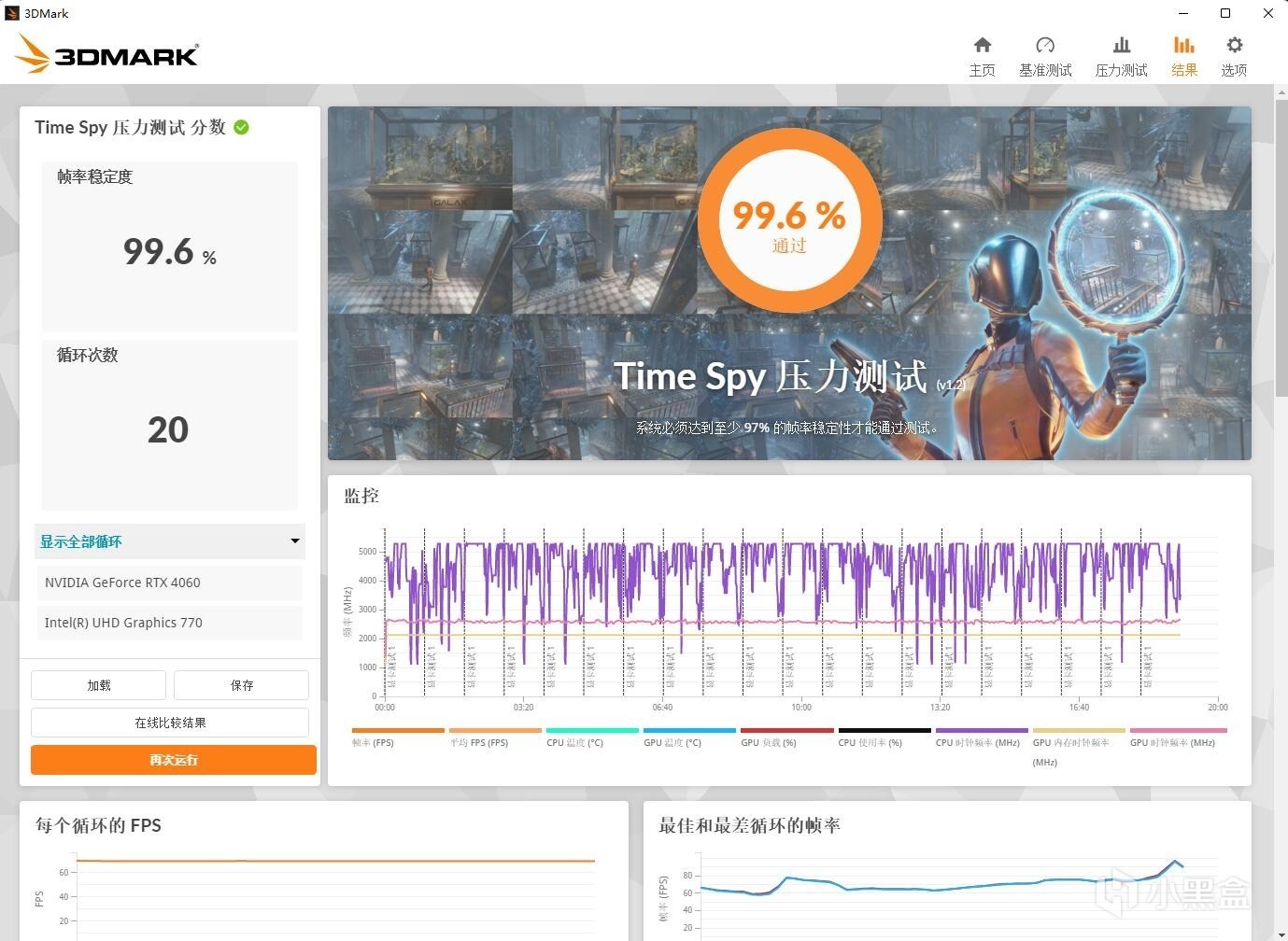 ▼跑个3Dmark的压力测试,TS模式,帧数稳定率在99.6%,非常稳定。