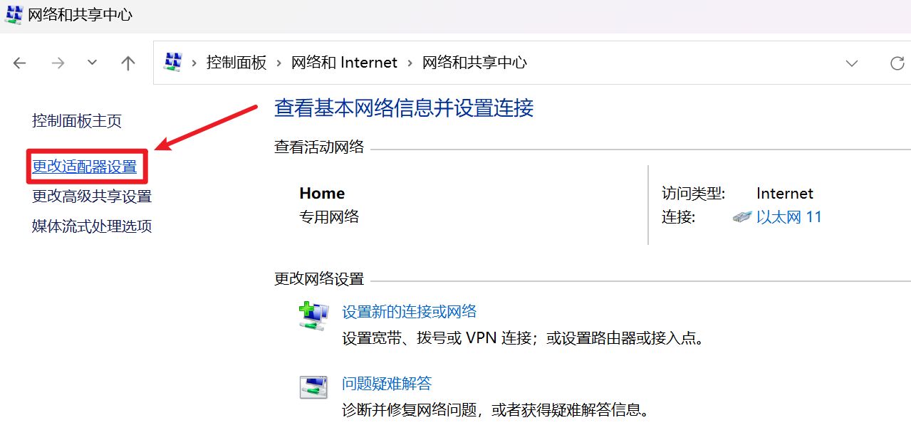 4. 点击“更改适配器设置”