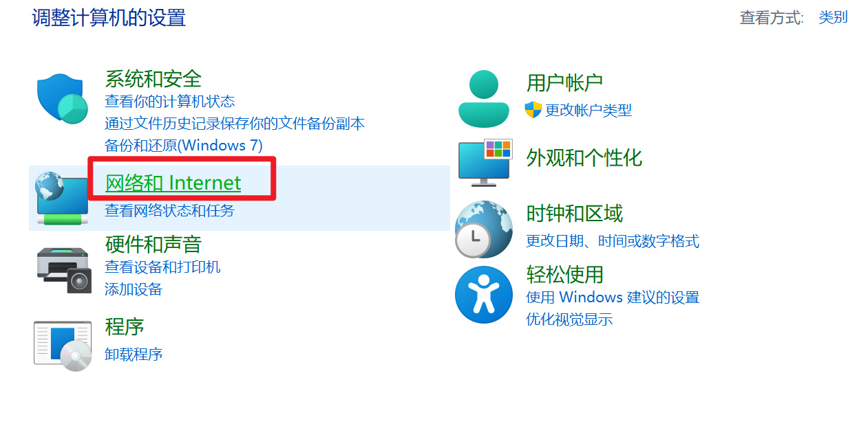 2. 在控制面板中打开“网络和Internet”