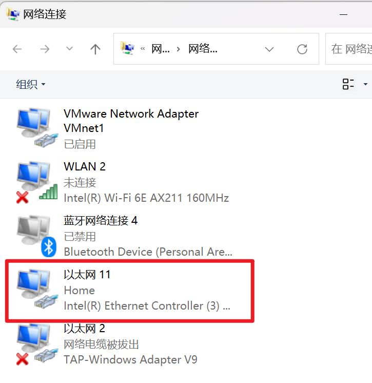 5. 在这个界面可能会有好几个网络连接,如果你是用WiFi上网那么就选择名字带“WLAN”的,如果你跟我一样是插网线上网的,那么你就选择名字带“以太网”或者“Ethernet”的。