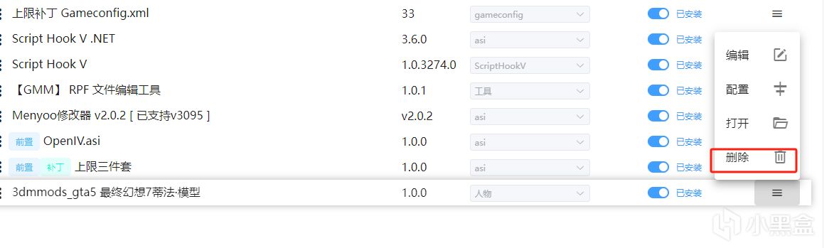 6、如果你不想要这个东西了,因为安装的位置是c盘,易卡,直接点删除即可,如果安装了很多mod冲突进不去游戏,也可以取消安装即可