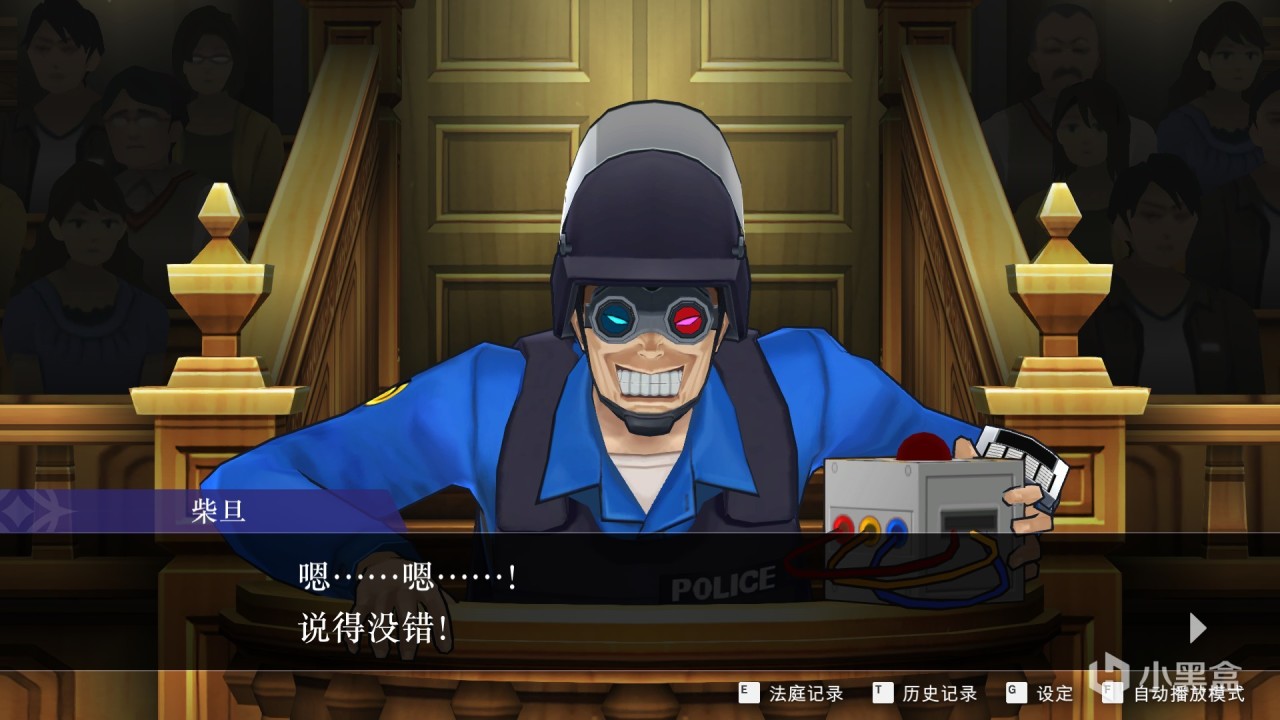 一位是第一個案子的真兇柴旦基器仁(玩了個拆彈機器人的諧音梗),遊戲爲了突出這位拆彈專家的特性,將他設定成了一位必須依靠打字輸出才能對話的角色,然而這種對話形式因爲本質上就沒有幽默感的文本而顯得非常無趣,反倒增加了更多無聊的轉場動畫,讓劇情變得更加拖沓。