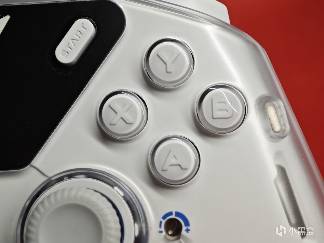 ABXY按键采用的是XBOX键位布局,外壳采用是水晶按键,手感摸起来不错。内部是机械按键2.0,0.3毫米的触发速度和80克按压重量。按键下面是微动开关,打起游戏来反应迅速、打击手感非常舒服。