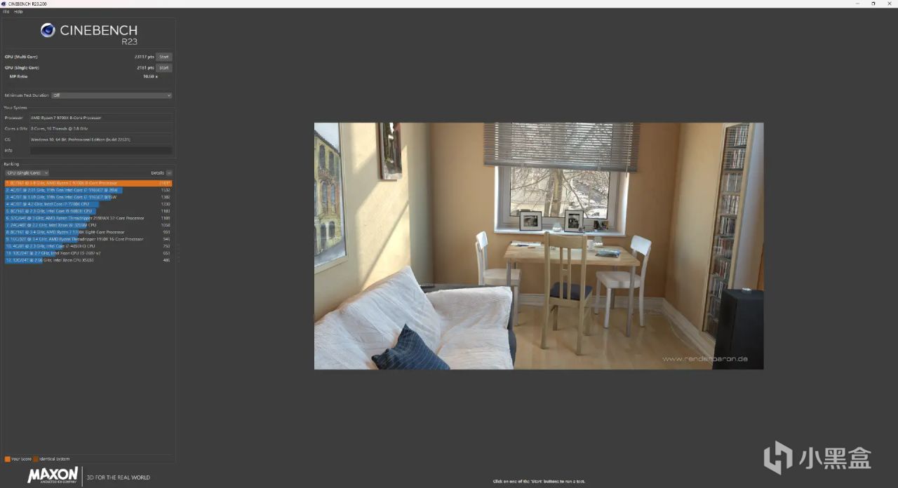 CINEBENCH R23测试,单核性能得分为2200,多核性能得分为19436。