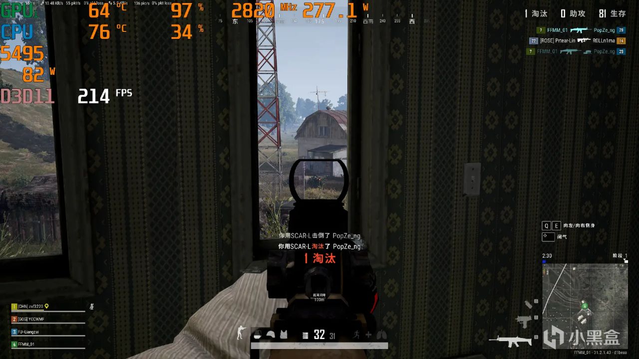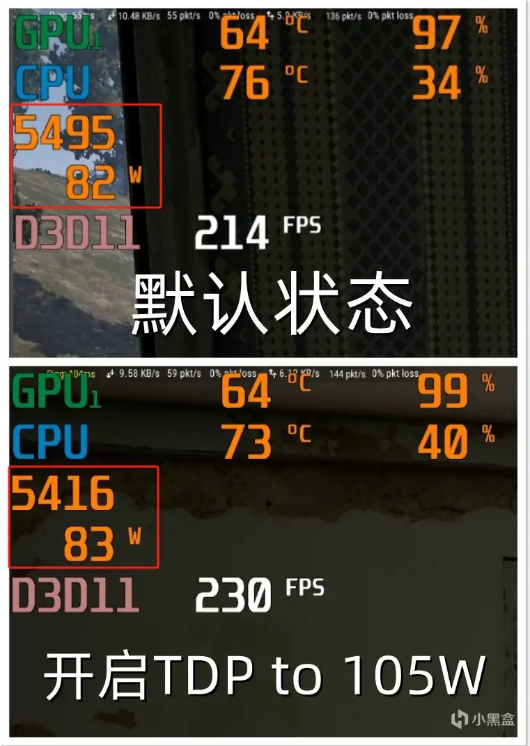 开启TDP to 105W后,游戏帧数大概在210PFS~236FPS之间,平均帧数为216FPS。