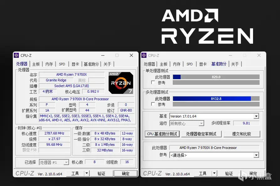 CPU-Z测试单核得分为829,多核得分为8132.8。