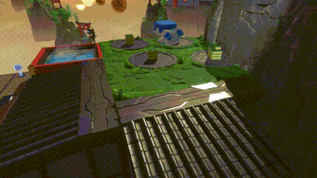 在微缩探秘这个关卡中,随地大小变的能力与充满细节的场景结合,风趣幽默、天真浪漫也不失趣味性。你能变小后在草丛中探险,仰视那些庞然大物;也可以偷偷钻进别人被窝,突然变大,给机器人人强制开机。