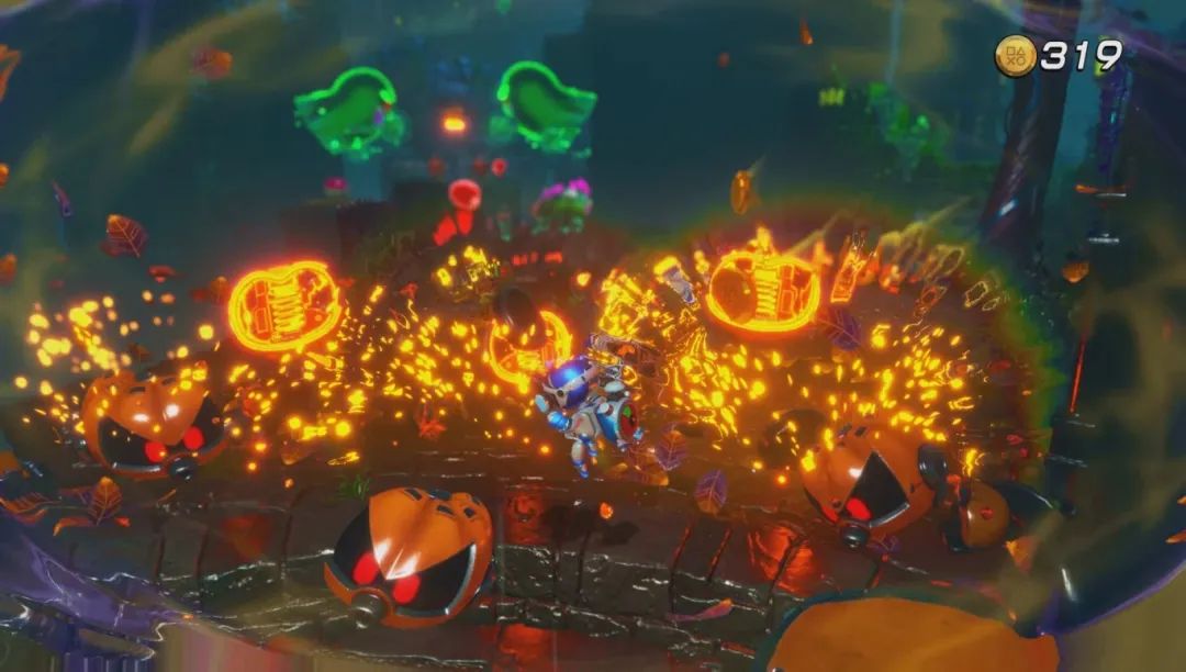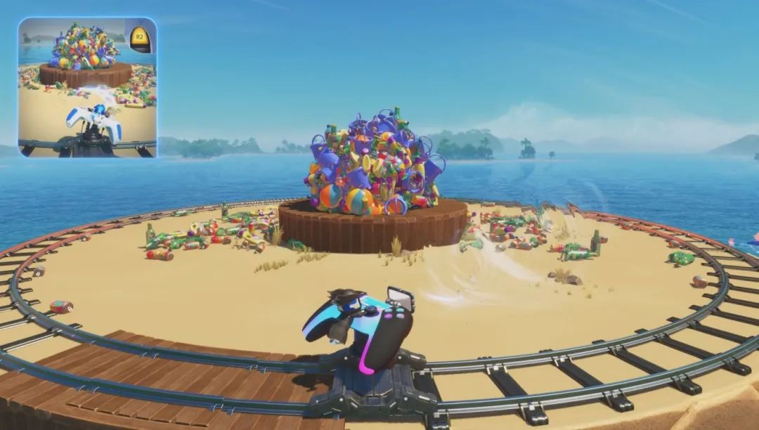 PS5首发时的《宇宙机器人 控制器指南》,全方位、完美地展现了手柄特性,并与游戏玩法深度结合。这样的体验在本作更进一步,玩家的能力设计不再局限于手柄特性,而是聚焦于玩法,以玩法和关卡为核心,让手柄性能自然而然地融入到游戏体验中。