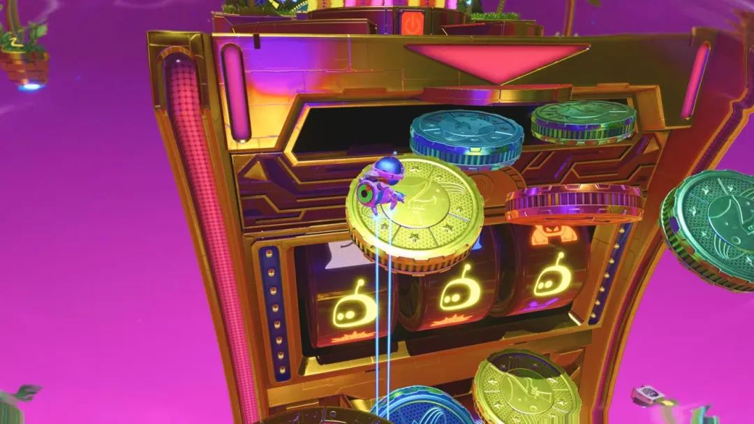 回归到拯救机器人,有时他们会有与场景间的互动,或许会根据某种风格的关卡,搭配对应的角色。可惜的是关卡内的表现还是有限的,毕竟只是收集品而已,不会有前作那么多关卡内的角色彩蛋。