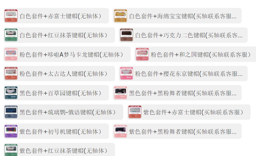极地狐轴+搭配MK870套件+正刻侧刻键帽的成品键盘组合,多款配色可供选择