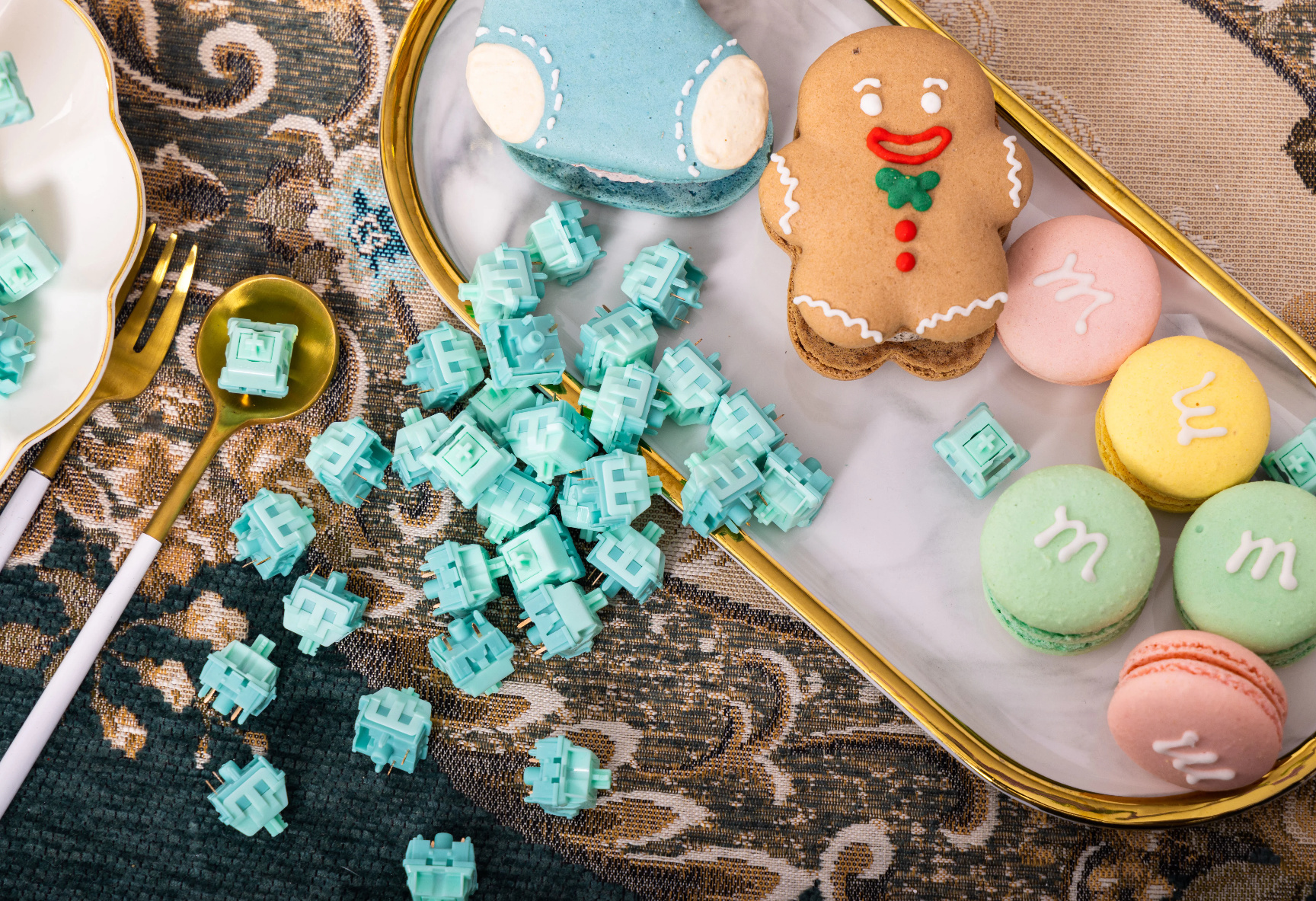 所以,几何蛋糕的大货将原有的牛油果绿色键将全部更换为圣诞深绿(原小键盘区色,如图数字键)