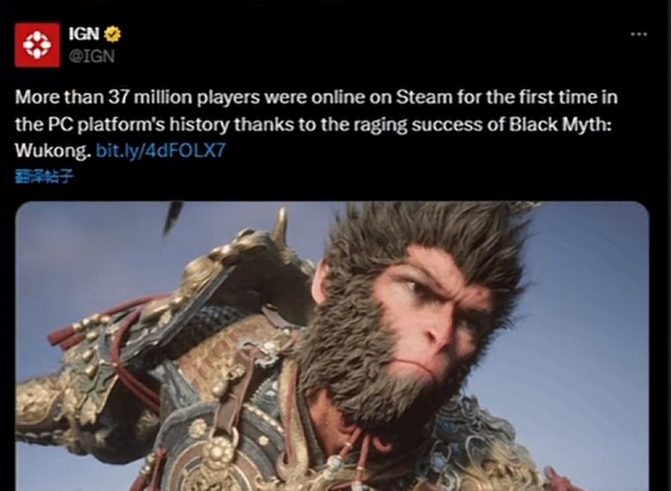 steam在線人數高峯時段更是表示,得益於《黑神話:悟空》的巨大成功,steam有史以來超過3700萬玩家在線