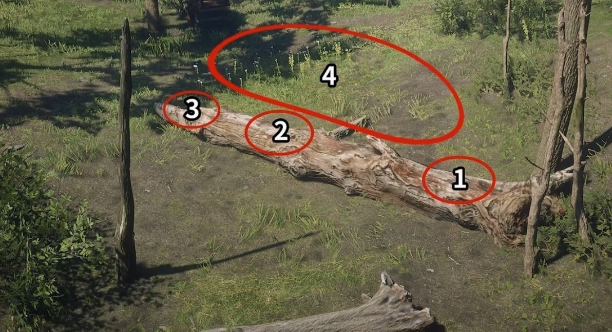 到底之後找到這些參照物,松鼠固定刷新在倒地的大樹上。