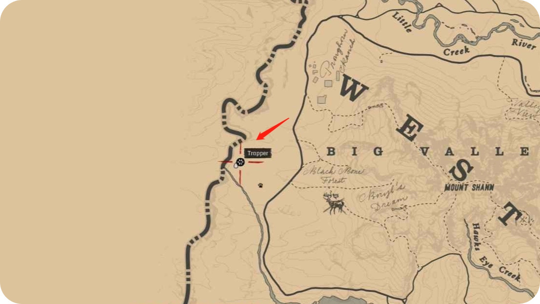 這個地點河灘和山直接固定刷新松鼠🐿️,而且沒有雜草,稍微容易看見點(確實太小了。。。。)找到三星,用小型獵物箭矢一箭解決。(捕獵步槍也可,就是有概率破壞皮毛,要是覺得松鼠實在難找就別用這個了,比較搞心態。。。。)