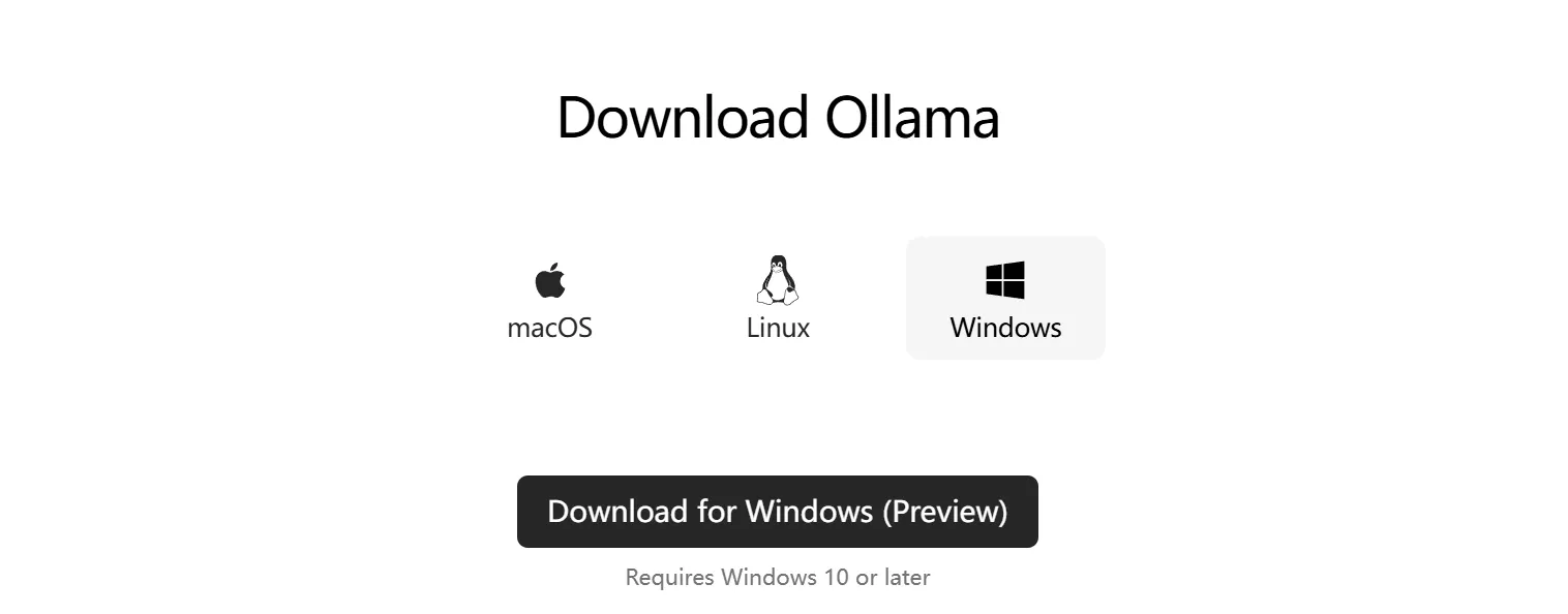 首先,前往 Ollama 官方网站 下载客户端并安装。默认安装目录为 C:\Users\你的用户名\.ollama。在这个目录下可以找到下载的模型文件和相关数据。